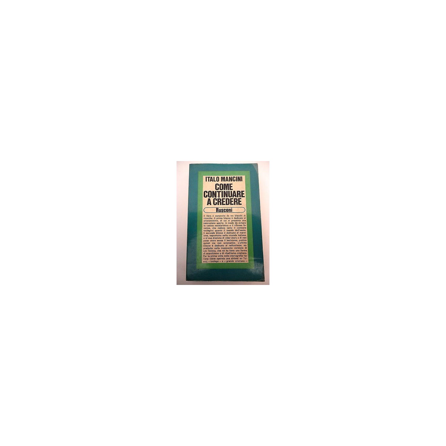 • ITALO MANCINI: Come continuare a credere, I° ed. 1980, RUSCONI A85 ...